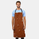 Great color and even though I ordered the kid size, it covers well enough to use during the holidays. I am not a big woman and prefer a shorter apron. I stand 5"6" and the length of the garment goes to mid-thigh. The tie straps fit well at my waist and even though there is no neck strap adjustment, the opening is plenty big enough. I am happy with the size and fit. I am sharing my apron with my 10 year old grandson, too! The color is vibrant and looks good, as shown on the website. The stitching looks strong and reinforced. Photographed is front side and back side of the apron, reinforced straps and coloring. My phone camera may not be the best at showing the details.