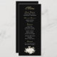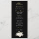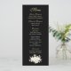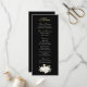 This dark black menu with gold and white script is simply elegant. A floral bouquet graces the bottom of the menu. The couple's names are on the back with a gold ampersand. Perfect for any occasion ... all fields can be customized for your luncheon or dinner. Optional names on back for weddings and anniversaries