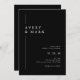 Plain white envelopes are included with paper invitations and will come to fit the invitation size you select. If you don’t need the envelopes, you may choose to not receive them by selecting the dropdown below "Envelopes" and choosing "None." If you’d like to have a design on your envelopes, you can browse all of these available envelopes to find the design that complements your Dark Black Modern Minimalist Wedding Invitation.