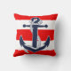 Dark Blue Anchor Chic Nautical Red Stripes Pattern Throw Pillow