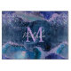 This cutting board features an elegant and glamorous dark blue agate marble background with faux blue glitter accents. The monogram combines handwritten script and modern sans serif fonts for a classy and sophisticated look. This will make the ideal gift as it can be customized with a name and initial. The sequins and distressed texture creates the perfect blend of chic and grunge.