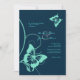 Yes, you can print on the back of your invitation for free! Most designs already have a corresponding design on the back that can be personalized using the Design Tool and going to Layers. This is a great way to communicate more information or further personalize your Dark Blue And Teal Butterfly Wedding Invitation. The option is really up to you.