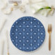 Fun paper plates for the winter holiday season, decorated with a dark blue snowflake pattern.