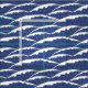 Dark blue and white fabric with simple, linear waves pattern. Inspired by traditional japanese patterns.