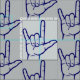 Add a Sign Language touch to your sewing project with this great Fabric featuring several Dark Blue ASL I Love You Hands. Skirts, Shirts, Pillows, Quilts, and more. From our Sign Language Fabric Collection.