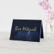 Dark blue background with Bar Mitzvah in silver script font. Easily customize front and inside.