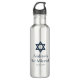 A modern dark blue Star of David Bar Mitzvah water bottle.