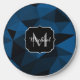 Dark blue black geometric mesh pattern Monogram Wireless Charger