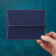 Dark Blue Damask R.S.V.P. return envelope, with blue damask pattern on the inside and cream color on the outside.