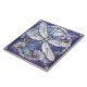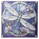 Dark Blue Dragonfly Stained Glass Flower Ceramic Tile