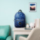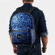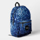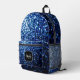 Dark blue faux glitter sparkles Monogram Printed Backpack. Cool fashion accessory bag for her. Beautiful girly glamorous blue shiny glitters sparkles design. Photo of sparkles, not real glitter! Create a unique and personalized backpack with a custom touch! Modern monogram with your initial and your name for that extra personal flair.