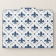 Seamless elegant pattern with Fleur De Lis, dots and rhombus decoration in navy blue color on white background for everybody who likes elegant luxury design.