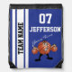 Drawstring Backpacks. Featured with a Funny Cartoon Sport Basketball Player with Personalized Name, Sport Number and Team Name in a dark blue color. Other sport bags and colors are available. ⭐This Product is 100% Customizable. Graphics and / or text can be added, deleted, moved, resized, changed around, rotated, etc... 99% of my designs in my store are done in layers. This makes it easy for you to resize and move the graphics and text around so that it will fit each product perfectly. ⭐ (Please be sure to resize, change, add, delete or move any graphics or text if needed before ordering) You can also "TRANSFER DESIGN" on other Zazzle products and adjust the design to fit most of Zazzle items. (button is down on the right side of the page) Some of the text graphics have ready to fill in the box(es) or you can Click on the "CUSTOMIZE" button to add, move, delete, resize, background color or change any of the font or graphics. The design is made with high resolution vector and/or digital graphics for a professional print. ⭐NOTE: (THIS IS A PRINT. All zazzle product designs are "prints" unless otherwise stated under "About This Product" area) The design will be printed EXACTLY like you see it on the screen and on the product...so please make sure when you do your changes on the resizing of any of the graphics or text that it fits in the areas correctly and that your spelling and wording is how you like it to be in size, color and font. If you have any questions about the "DESIGN ONLY" or need help please contact ME DIRECTLY at siggyscott@comcast.net or visit my store link: https://www.zazzle.com/store/designsbydonnasiggy (Copy and Paste) I'll be happy to help. ⭐ ALL OTHER QUESTIONS SUCH AS (shipping, refund, the printing being incorrect, the product itself, etc...) please contact Zazzle or the Maker ⭐DIRECTLY⭐. Thank you for the support and stopping by my store - DesignsbyDonnaSiggy. © Donna Siegrist⭐⭐⭐ ZAZZLE promises 100% satisfaction.