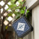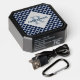 This speaker features a modern geometric diamond pattern in navy blue and white. The design offers a monogram for you to personalize with your initial and name.
