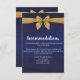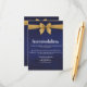 Stunning dark blue background tied with a gold bow image. Stationery is all printed, no actual ribbon. Personalize our gorgeous stationery with your event details easily and quickly, simply press the customize it button. Coordinating backside is included. Matching items to complete your event collection are available in our Zazzle store!