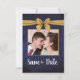 Stunning dark blue background tied with a gold bow image. Stationery is all printed, no actual ribbon. Personalize our gorgeous stationery with your event details easily and quickly, simply press the customize it button. Coordinating backside is included. Matching items to complete your event collection are available in our Zazzle store!