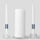 Oval wreath leaf design in gold color and dark blue wedding unity candles. Add your own couples monogram initials, name, and wedding date. Other colors and matching wedding items available. © Original leaf drawing and design by Sarah Trett for www.mylittleedenweddings.com on Zazzle.