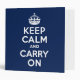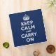 "Keep Calm and Carry On" against a deep sea navy blue.