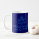 Dark blue KeepCalm Mugs | Personalizable template. Cute gift idea for men and women. Customize background colors ie blue. Create your own funny KeepCalmandCarryOn parody. Simply edit the text of this template to make a unique design. Popular quotes: Keep calm and party on. Keep calm and love me. Keep calm and drink coffee. Personalized mugs are a great gift idea for friends and family.