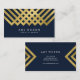 Dark Blue Modern and Faux Gold Geometric Design Business Card