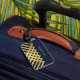 Stand out from other luggage at the baggage claim with this elegant dark blue bag tag featuring a bold faux gold geometric design.