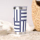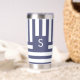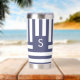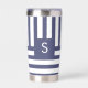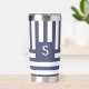 Dark Blue Monogram Striped Custom Coffee Lover Insulated Tumbler