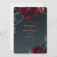 Dark Blue Moody Floral Gold Greenery Wedding Invitation