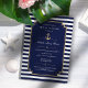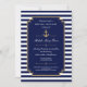 Customize this stylish modern Nautical Bridal Shower Invitation. Blue and white striped design with dark blue, set as a template for an easy customization. Below are links to a matching Wedding Invitation and RSVP, Program Cards, Rehearsal Dinner Invitation, Directions Card and Thank You Tag Cards and Favor Stickers. Also available in white.
