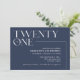 Dark Blue Navy | Cool Modern 21st Birthday Party Invitation