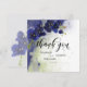 Elegant and artistic Thank You calligraphy design featuring a stunning watercolor dark blue orchid flower and watercolor green and dark blue color splash in the background.