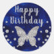Dark Blue paintbrush and Silver Butterfly Birthday Classic Round Sticker