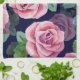 Dark Blue, Pink Roses Watercolor. Kitchen Towel