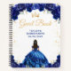 This elegant and glamorous Quinceañera guest book features a beautiful princess with dark hair in a dark blue ball gown. The text combines handwritten script and modern sans serif fonts for a classy and sophisticated look. The floral arrangements and gold confetti create the perfect blend of rustic and chic.