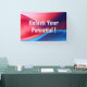 Geometrically styled banners in bold blues and reds, featuring laid-back white fonts, bring a fresh, modern vibe to school spaces, encouraging students to stay motivated.