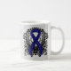 Dark blue ribbon with wings and filigree pattern. The dark blue / navy ribbon stands for Ankylosing Spondylitis Awareness, Apraxia Awareness, ARDS (Acute Respiratory Distress Syndrome) Awareness, Brahcial Plexus Injuries, Crime Victim's Rights Awareness, Dysautonomia Awareness, Education Awareness, Epstein-Barr Virus Awareness, Erb's Palsy Awareness, Familial Polyposis Awareness, Free Speech Awareness, Hurricane Awareness, Hurricane Katrina Awareness, Ichthyosis Awareness, Langerhans Cell Hystiocytosis, Police Lost in Duty Awareness, Restless Legs Syndrome, Save The Music Awareness, Teens Against Smoking Awareness, Transverse Myelitis Awareness, Water Accidents Awareness, Water Quality Awareness, and Water Safety Awareness. And also March is Chronic Fatigue Syndrome Awareness, Colon Cancer Awareness, Colorectal Cancer Awareness, Rectal Cancer Awareness, and Short Bowel Syndrome Awareness Month. April is Child Abuse Prevention Awareness Month. May is Arthritis Awareness, Colitis Awareness, Crohn's Disease Awareness, Guillian Barre Syndrome Awareness, Huntington's Disease Awareness, and ME / CFIDS Awareness Month. August is Drowning Awareness, and Steven Johnson Syndrome Awareness Month. September is Alopecia Awareness, Dystonia Awareness, Hystiocytosis Awareness, Leukodystrophies Awareness, Myositis Awareness, and Reye's Syndrome Awareness Month. October is Interstitial Cystitis Awareness, and Victim's Rights Awareness Month.