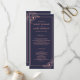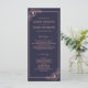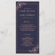 Dark Blue Rose Gold Floral Wedding Program featuring rose gold pink script and serif text framed by delicate floral line art on a deep blue background. A refined, dramatic look that complements elegant and formal wedding ceremonies.