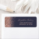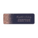 The left-hand edge of this elegant modern wedding return address label features a rose gold faux glitter design. The customizable text combines pale rose colored handwriting, copperplate and italic fonts on a dark blue background.