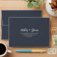 Chic, modern and simple self-addressed RSVP envelope with your names in white elegant handwritten script calligraphy on a dark blue background. Perfect for your wedding! Simply add your names and address. Exclusively designed for you by Happy Dolphin Studio.