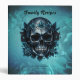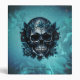 Dark blue skull with roses. Impressive, stylized skull in a deep, rich dark blue that is reminiscent of the night. The contours of the skull are clearly defined and give it a mysterious aura. The eye sockets are deep black and radiate a mysterious intensity. This design conveys a powerful message of life and death, beauty and transience