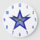 Modern design with a "shining" blue and white star on a white background. Wall clock with a customizable design for you to personalise with your own text, images and ideas. Please note that this is a printed image created using original photographs and digital techniques, it does not shine or contain real sparkles.