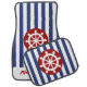 Dark Blue Stripe Burlap with a Ship Helm Emblem Car Floor Mat