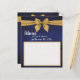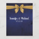 Stunning dark blue background tied with a gold bow image. Stationery is all printed, no actual ribbon. Personalize our gorgeous stationery with your event details easily and quickly, simply press the customize it button. Coordinating backside is included. Matching items to complete your event collection are available in our Zazzle store!