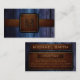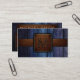 Dark Blue Wood Brown Leather Look Monogram Business Card
