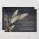 Rustic watercolor botanical greenery leaves on moody dark indigo grey background, elegant and romantic, great save the date cards for vintage rustic wedding, country wedding and garden wedding at night in fall and winter.
