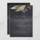 Rustic watercolor botanical greenery leaves on moody dark indigo grey background, elegant and romantic, great detail cards or direction cards for vintage rustic wedding, country wedding and garden wedding at night in fall and winter.