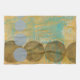 Dark brown and grey circles populate this work by Jennifer Goldberger, set over an orange and blue background. Grey Numbers are also printed on the background. An enjoyably abstract work, order your copy today!