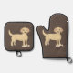 Dark brown Oven Mitt and Pot Holder Set with a Yellow illustrated Lab. Thanks to the Hungryjpeg for some of the elements in the design.