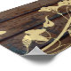Background image of dark brown wood. Keep track of table assignments--insert names by table, or alphabetically. Room for 100 names. Use "customize" option if you need to change spacing. NOTE: When you insert your names, they will not line up evenly (because of differences in name length). To align them, click the customize button. You will see a list on the right. Hold down the ctrl key while clicking each name in the group you wish to align. Once they are all selected, click Arrange. Then click Align Selected. Then choose the image labeled "left." This will give your selected group a straight left-side alignment. While the names are still selected, you can then drag and drop the box on the design page if you want to move the whole block of names.