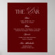 Elevate your reception with this personalized dark burgundy wedding bar poster, perfect for wedding bar decor and a stylish wedding drinks station. This wedding bar menu features elegant wedding bar signs and a timeless wedding bar sign, ideal for wedding bar signage and creative wedding bar ideas. Highlight your signature drinks with a beautiful signature drinks sign, showcasing wedding signature drinks, signature drinks wedding, and signature wedding drinks. Designed for an old money wedding, burgundy wedding, burgundy wedding theme, maroon wedding, maroon wedding theme, victorian wedding, deep red wedding theme, red rose wedding theme, opera wedding theme, dramatic wedding.