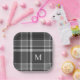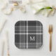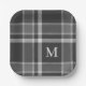 Dark Charcoal Gray Tartan Plaid with Monogram Paper Plates